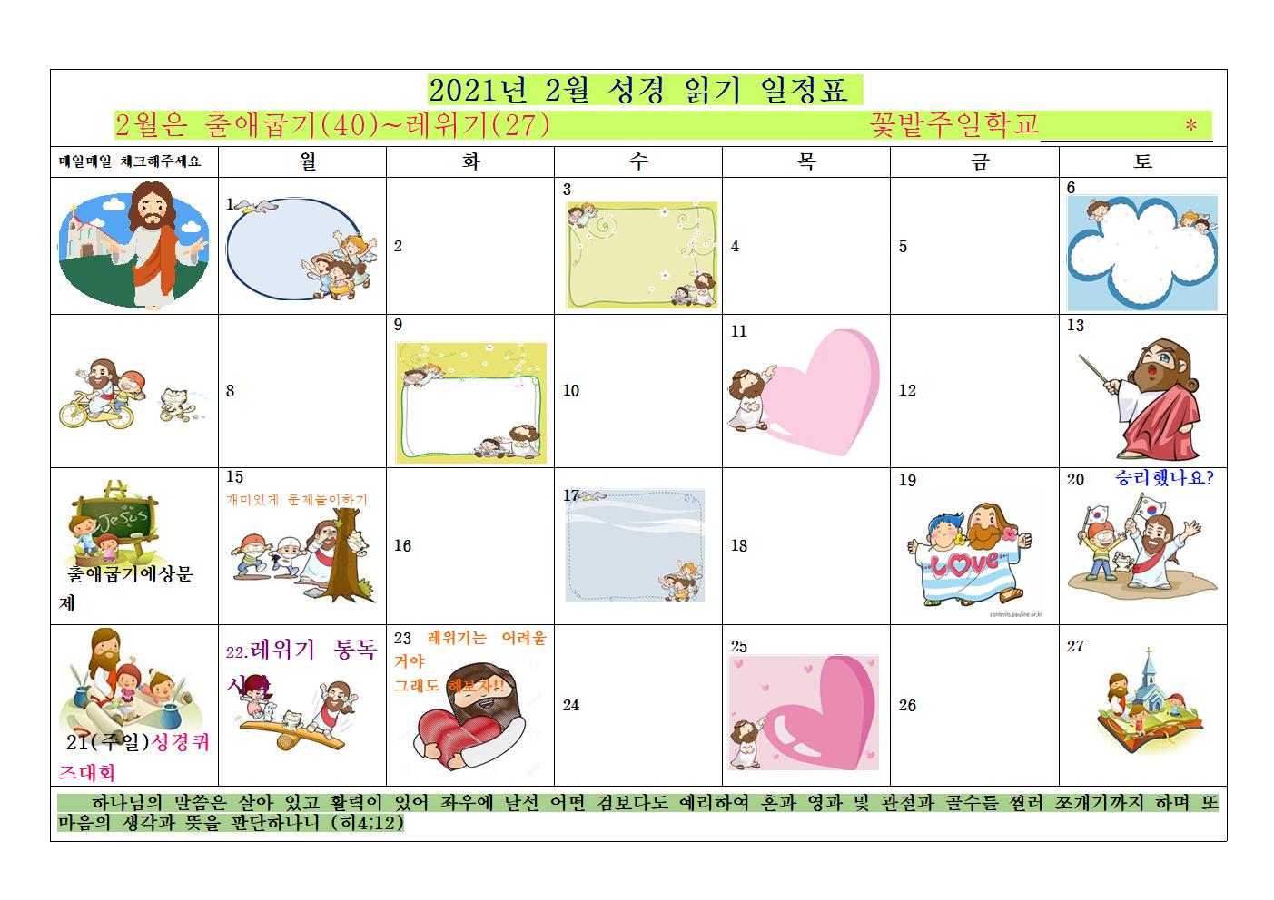2021년 주일학교 월별 성경읽기 기록표 2월~4월